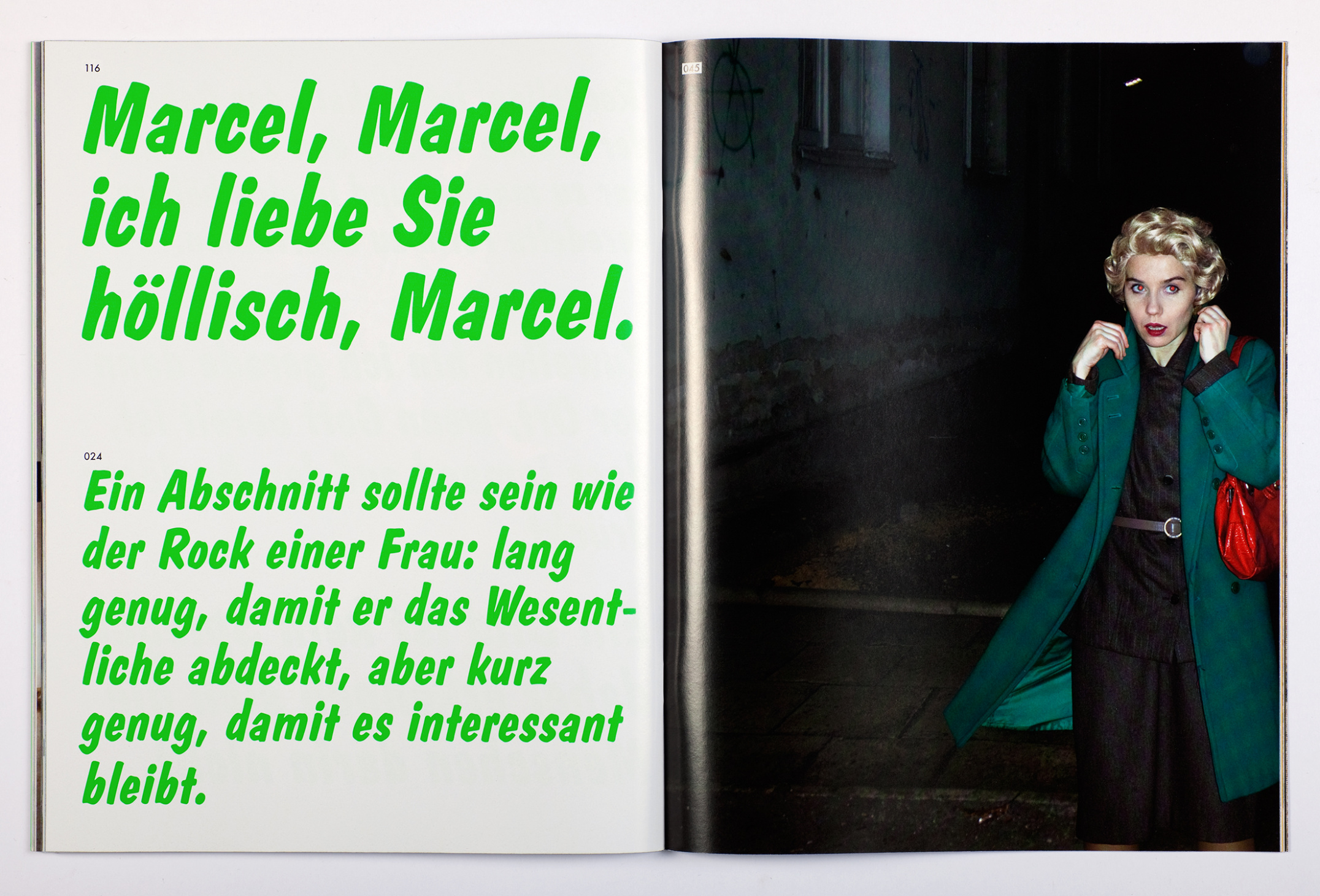 Jarvis Cocker together with his band Pulp sing about the end of irony and about a collage by Clunie Reid, Martha Rosler gives a theoretical twist to Aneta Grzeszykowska’s imitation of Cindy Sherman’s epochal Untitled Film Stills, whereas Truman Capote goes after a Japanese punk-portrait by Oliver Sieber with pointed scissors.